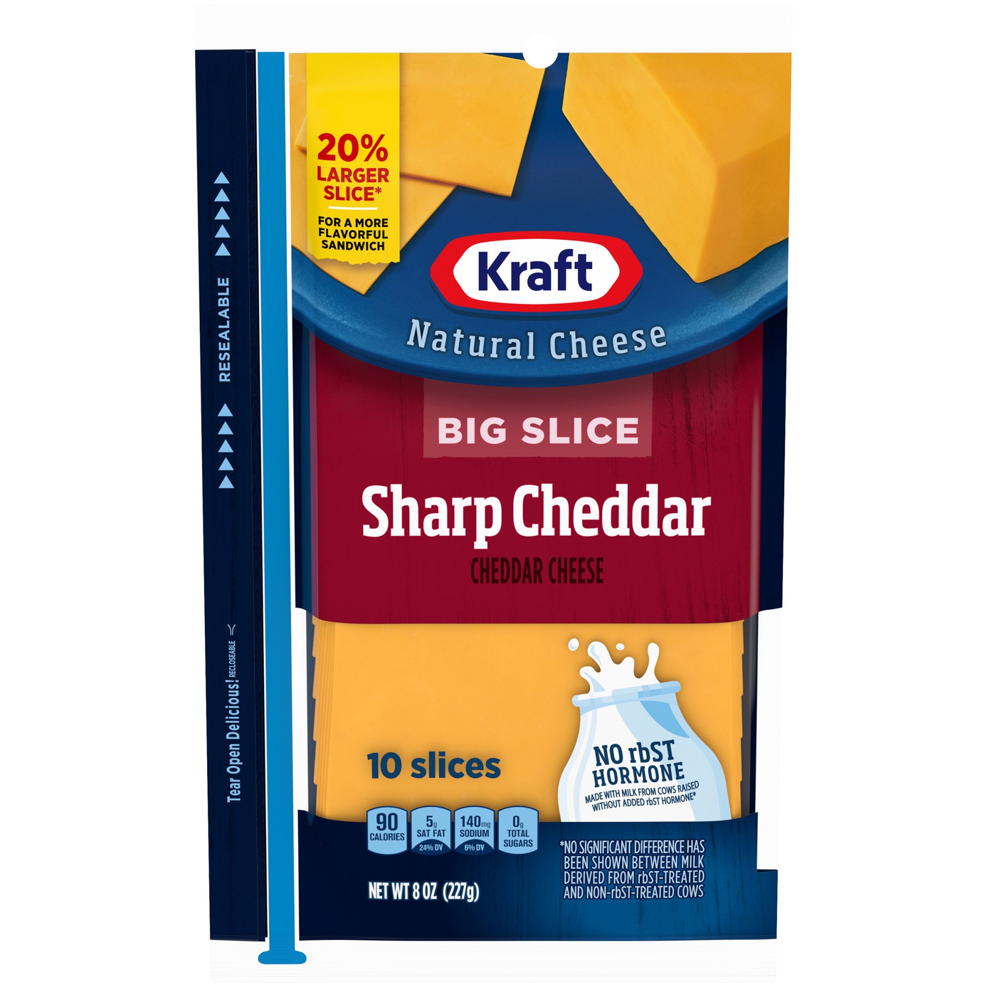 Each slice of sharp cheddar cheese contains only 60 calories and comes individually wrapped to help maintain freshness in your.